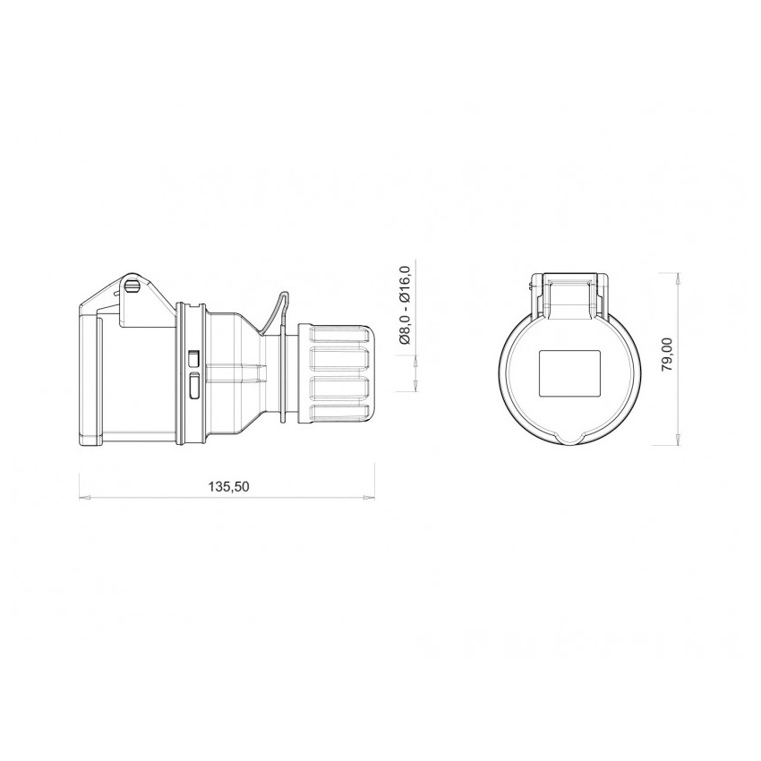 Розетка кабельная CEE, 16A, 4P, IP44, 6h
