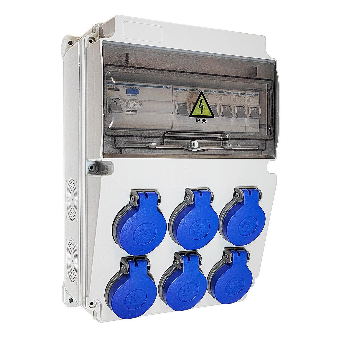 Щиток с автоматами и УЗО, 6 розеток Schuko, IP44, 210 х 300 х 122 мм