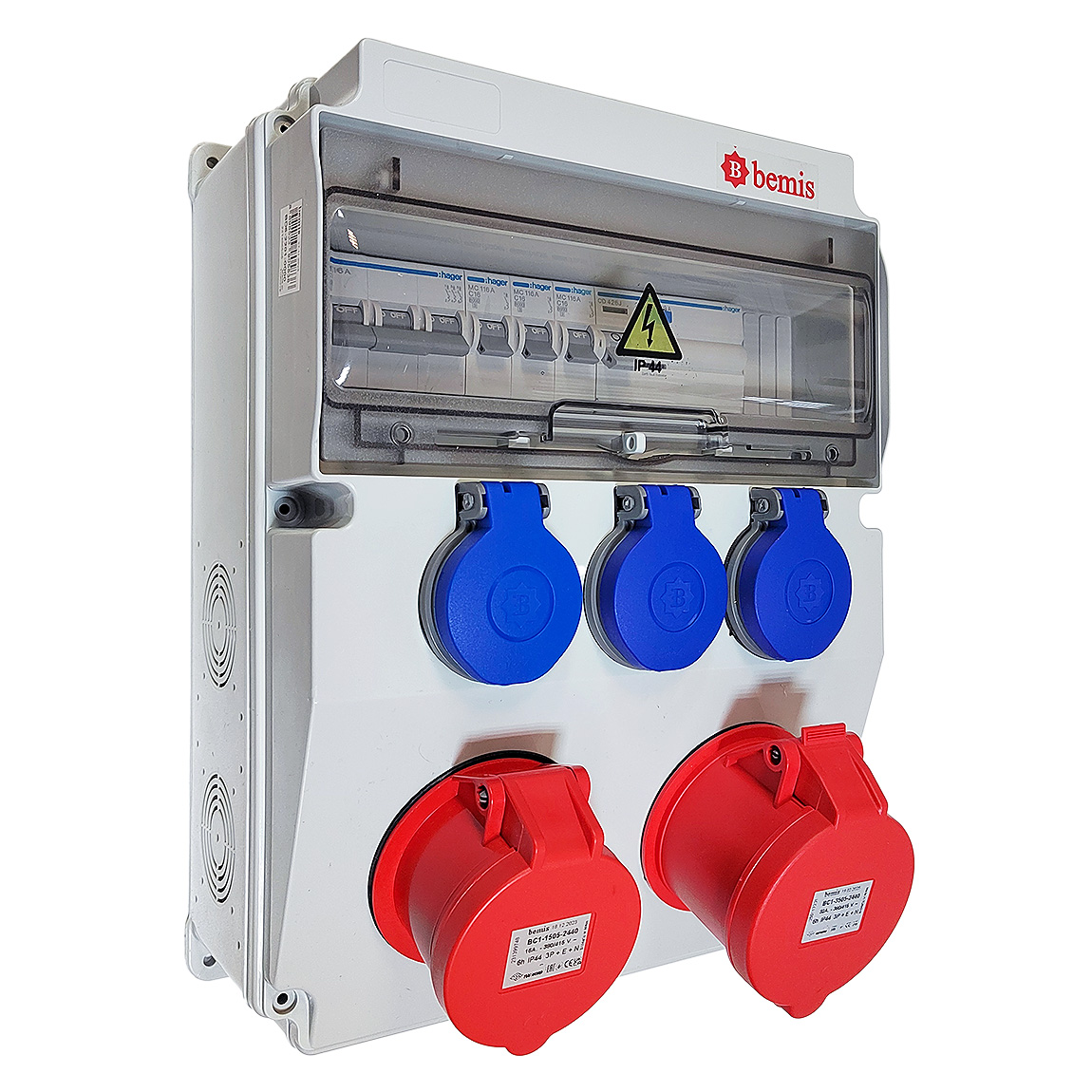 Щиток для 12 автоматов, с розетками: CEE 1х5/16А, 1х5/32А, Shuko: 3 шт, IP44, с автоматикой