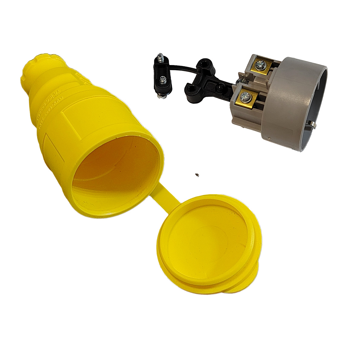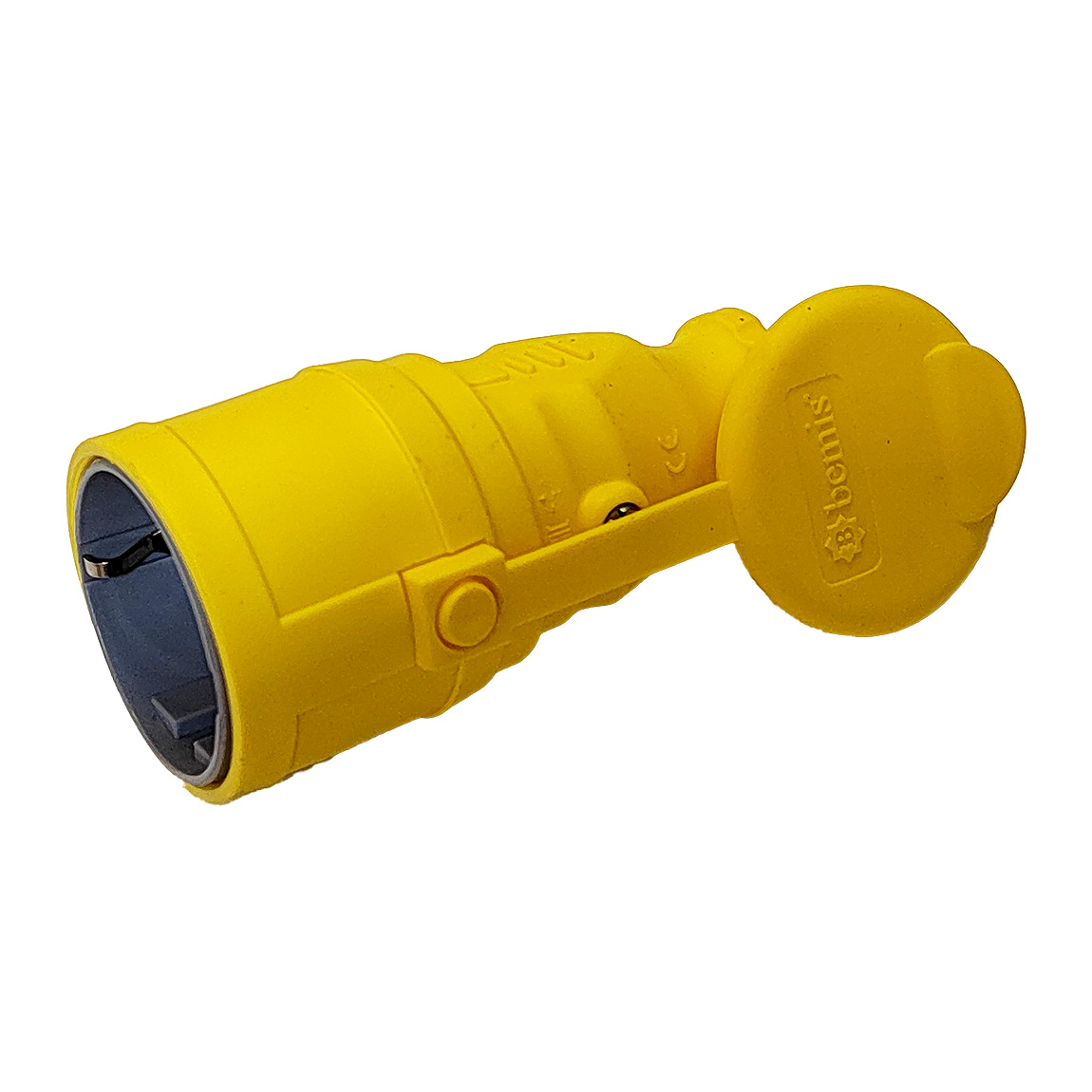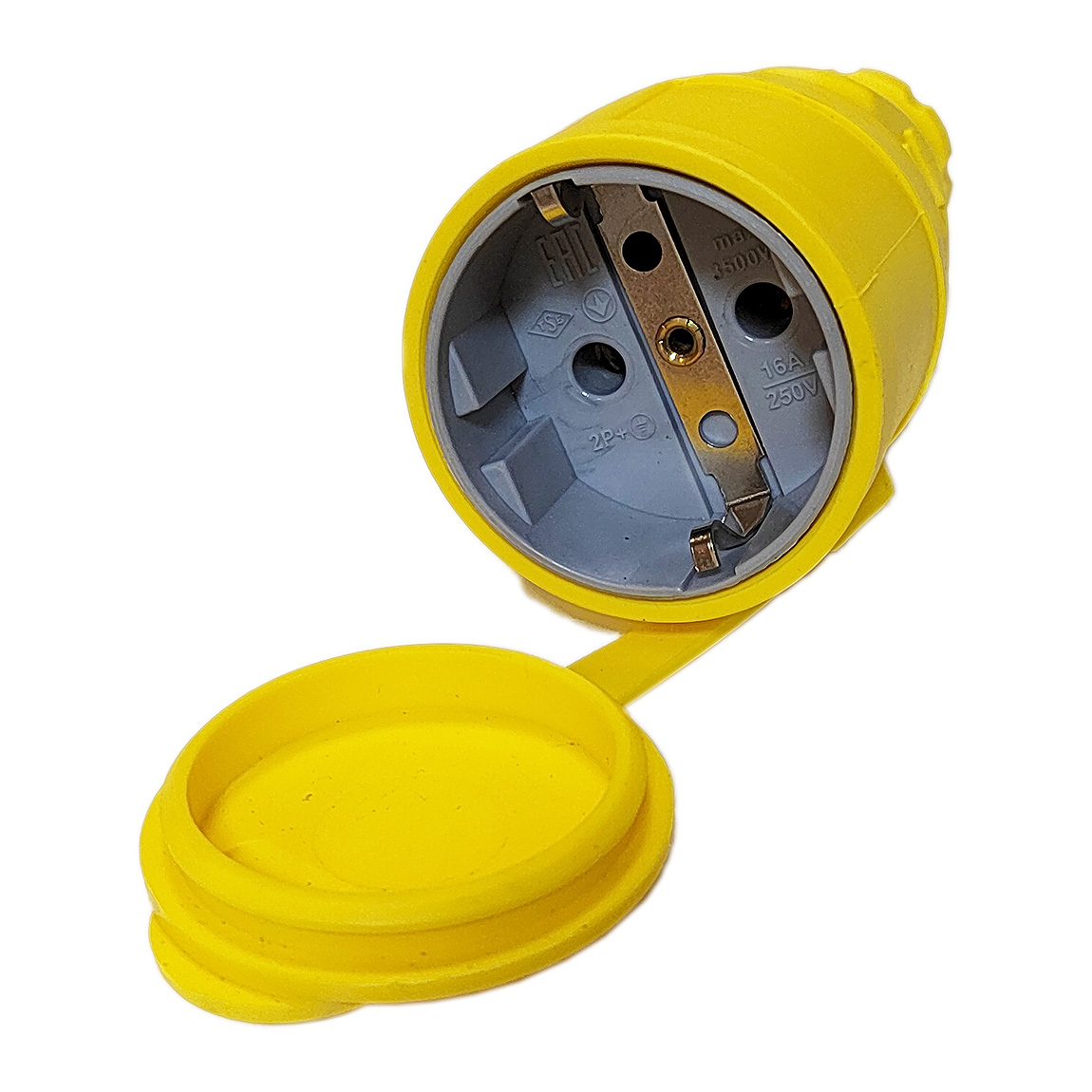 Розетка Schuko каучуковая, кабельная, с крышкой, цв. желтый, IP44