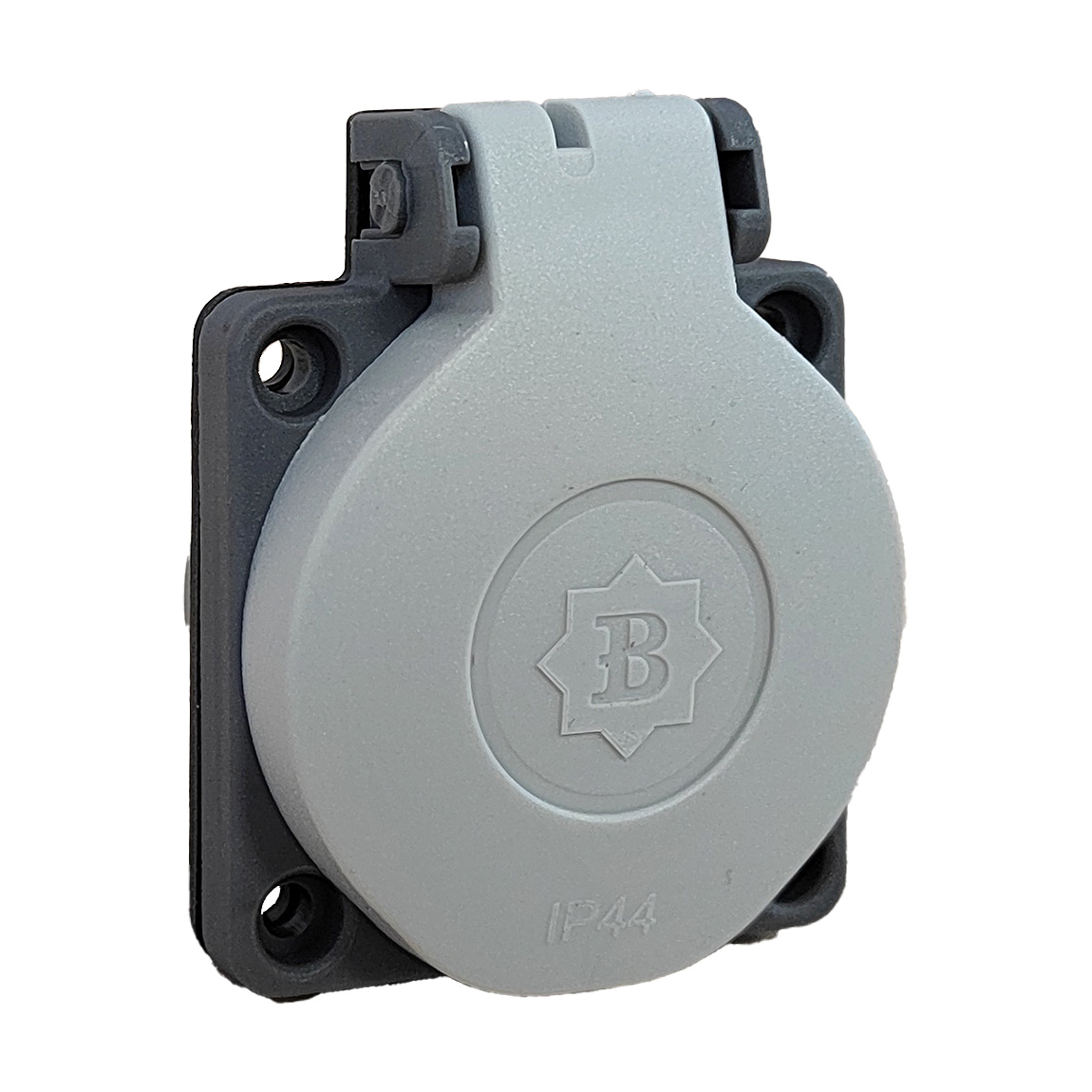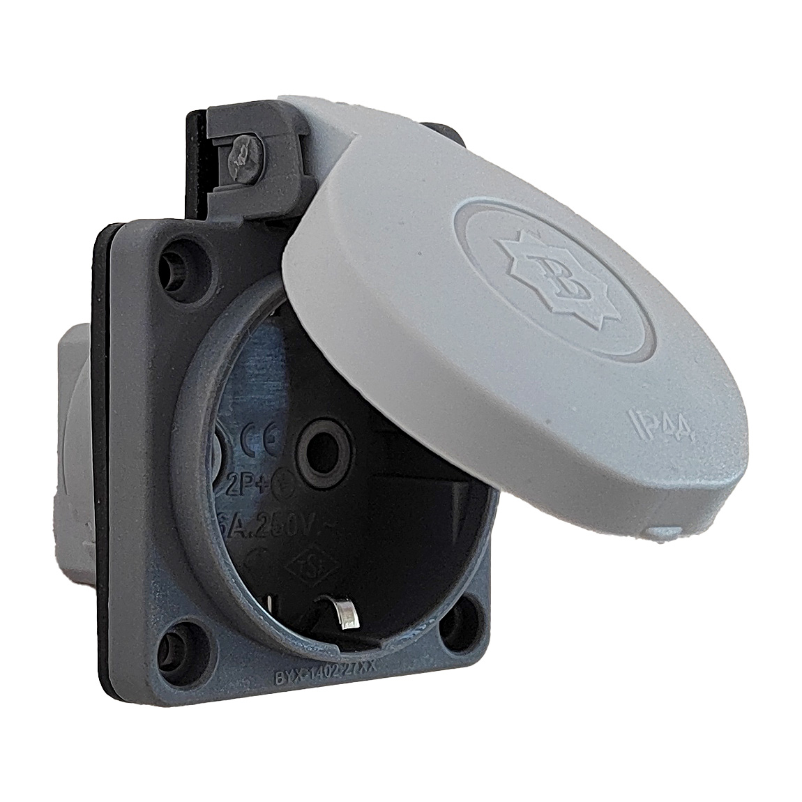 Розетка панельная, вертикальная, Schuko, цв. серый, IP44