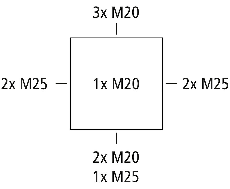 M20/M25, диапазон уплотнения 4 - 21 мм (1 сзади, 10 сбоку),