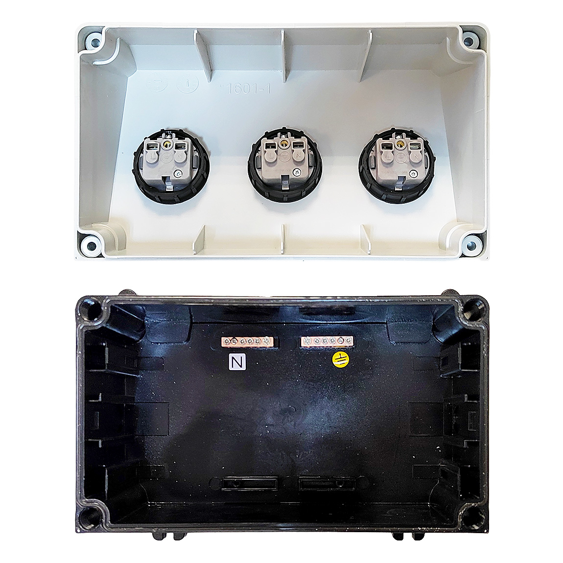 - Корпуса с клеммами на рейке